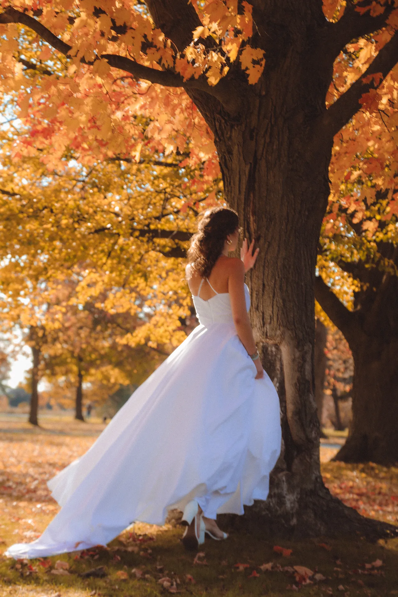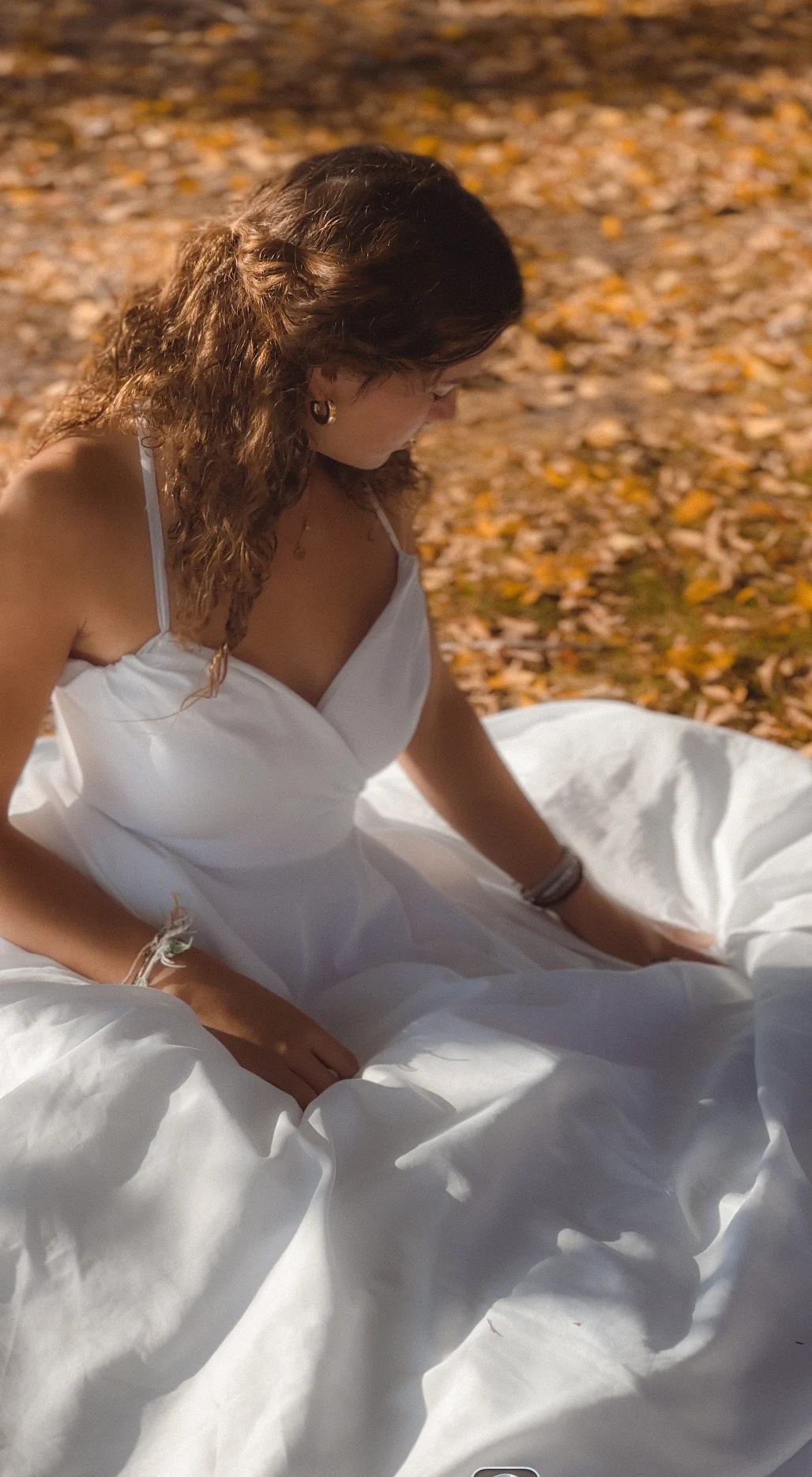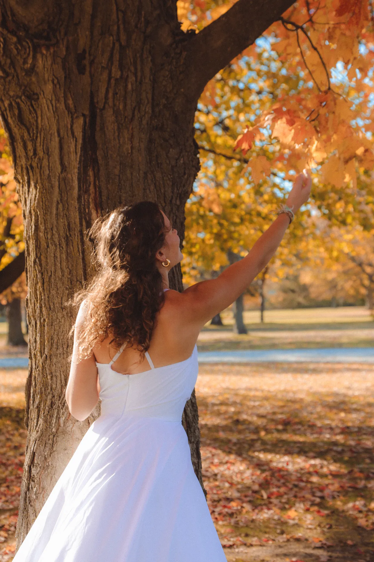 Crafted with a soft, luxurious cotton, this dress is designed to move and twirl, depicting a vision of classful beauty and timeless wonder. The A-line skirt paired with the form fitting waist creates a silhouette of sleek design and elegance, as the surplice bodice captures a simple yet classic look. The delicate straps flow from the top of the bodice, tracing over the shoulder where they cross over on the back, and the invisible zipper is carefully placed to make for a sophisticated, seamless appearance.