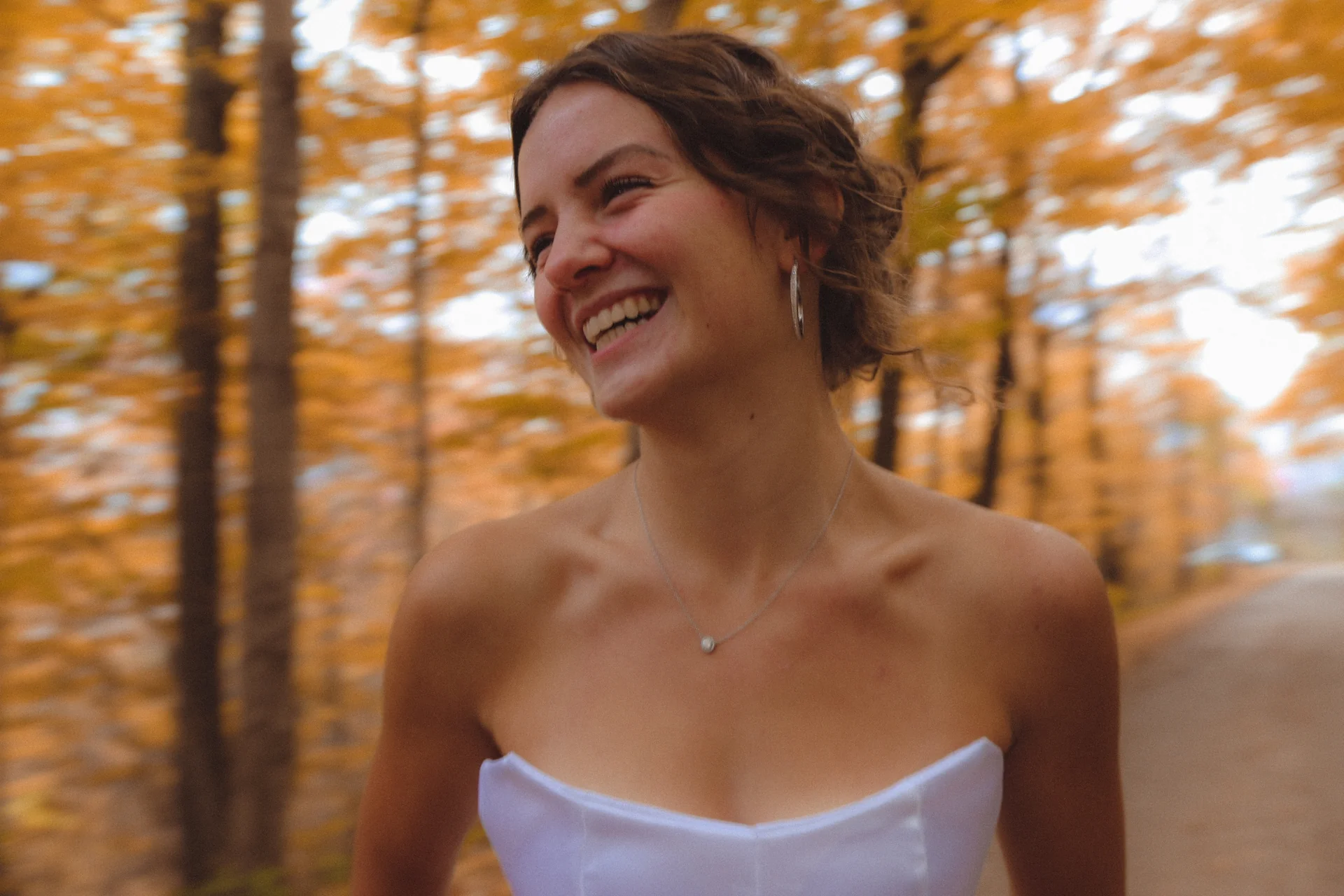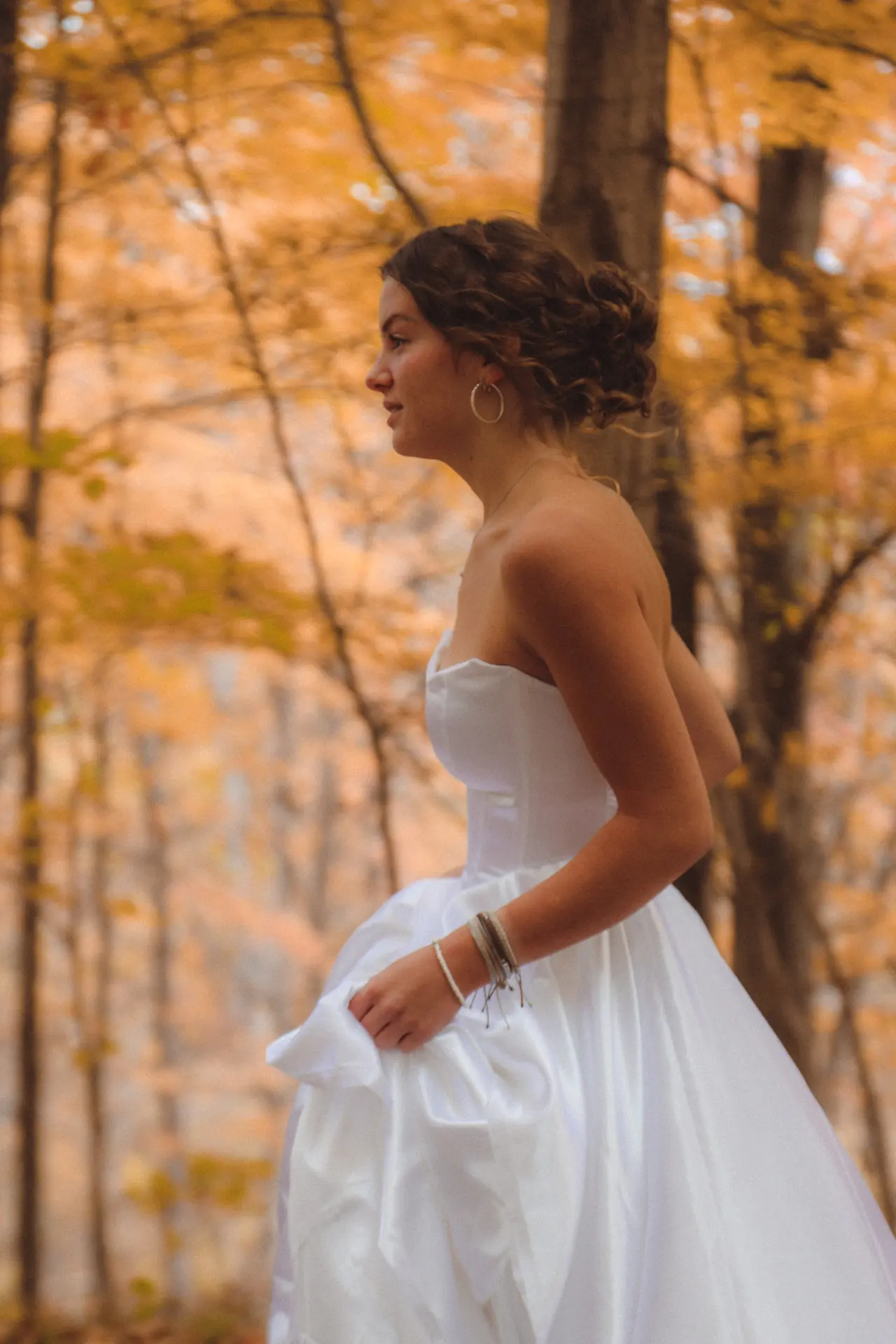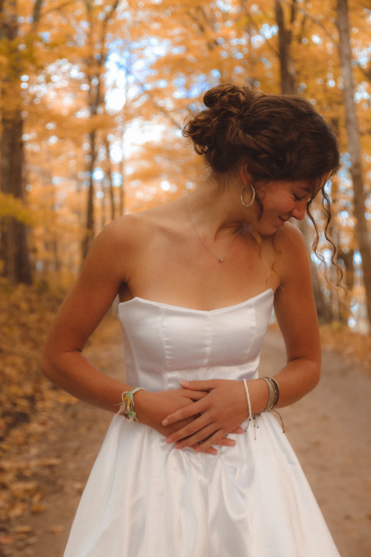 Perfect for a fairytale wedding, this timeless A-line gown was crafted with a beautiful, pure white satin. The front of the skirt is decorated with four ornate layers made to move and dance as the elegant train paints a picture of graceful beauty. The cat eye neckline and V shaped boning accentuates the bride's natural features, capturing a story of ageless beauty as the bride prepares to walk the aisle.